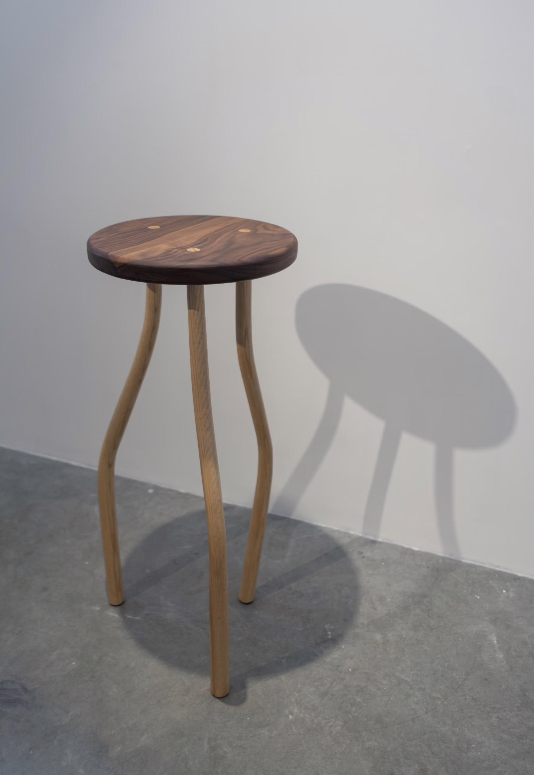 Tree branches inspire the legs to replicate movement in nature. To get the desired shape, I first carved the wood into cylinders, which were then steamed to be pliable and immediately clamped into the mold. I chose the walnut to create contrast and give it a solid feel. I hope people view this piece, imagining different ways they might use it in their lives.